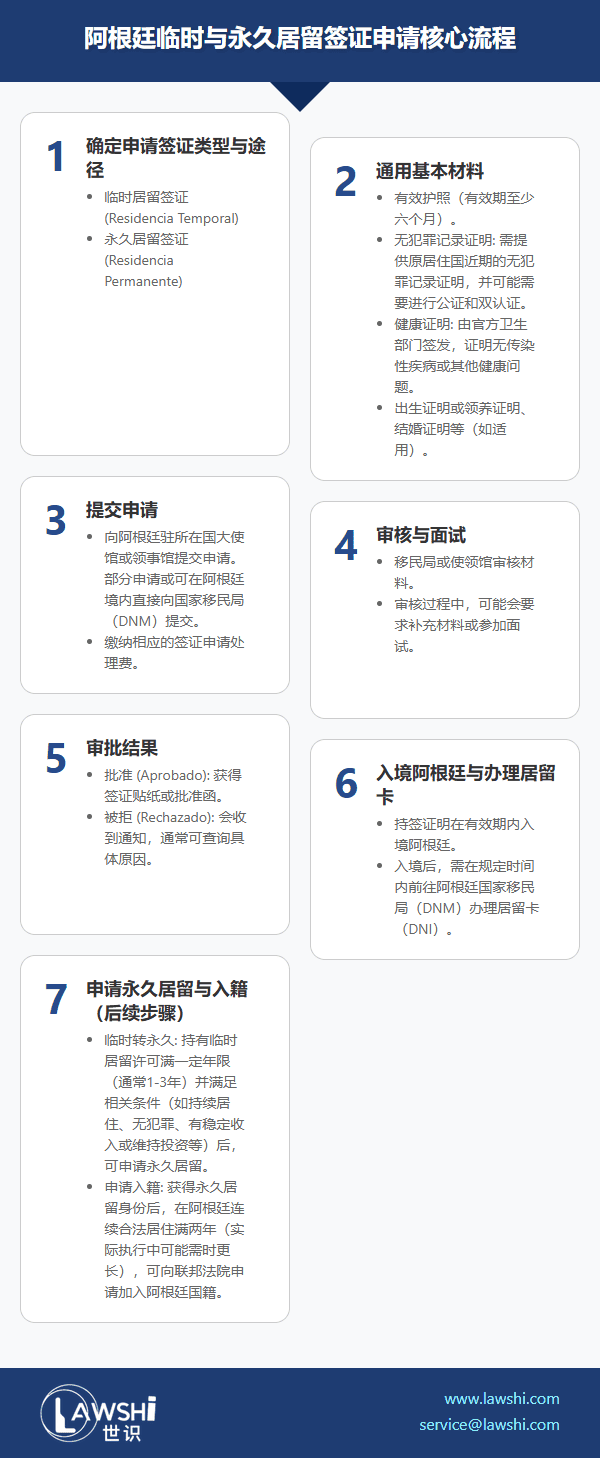 申请入籍:获得临时居留身份并在阿根廷连续居住满两年后,即可向联邦法院申请入籍,成为阿根廷公民。
