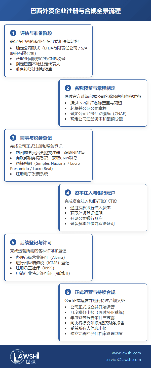 值得注意的是,巴西在2025年进一步优化了外商投资与公司注册的便利化措施。根据2024年《第14.754号法律》修订案,外资企业注册程序现已完全数字化,允许通过"巴西单一窗口"(Portal Brasil Gov)平台在线完成全部流程,包括名称预留、章程提交、税务登记和央行外资备案(RDE-IED)。新系统将平均注册时间缩短至25-35个工作日,并推出了多语言界面服务。同时,巴西央行于2025年1月简化了外资登记要求,取消了低于50万雷亚尔投资的事前审批,改为事后备案制,显著提升了小额投资的效率。