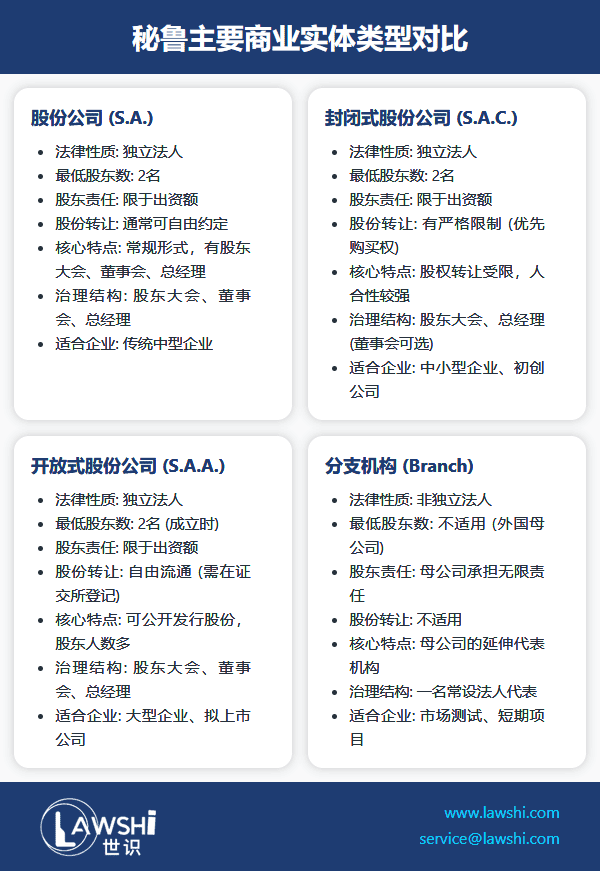 封闭式股份公司(S.A.C.)因其股东人数上限为20人,且股权转让受限,适合中小规模投资者或家族企业;而开放式股份公司(S.A.A.)则适用于股东人数较多、有公开融资需求的企业,其股份须在证券交易所登记,章程中不得设置股权优先购买权。