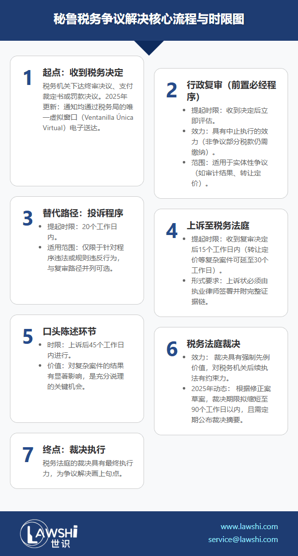 秘鲁税务争议解决体系强调程序合规和专业性。建议企业在收到税务决定后,及时寻求专业法律支持,充分利用行政和司法救济途径,维护自身合法权益。