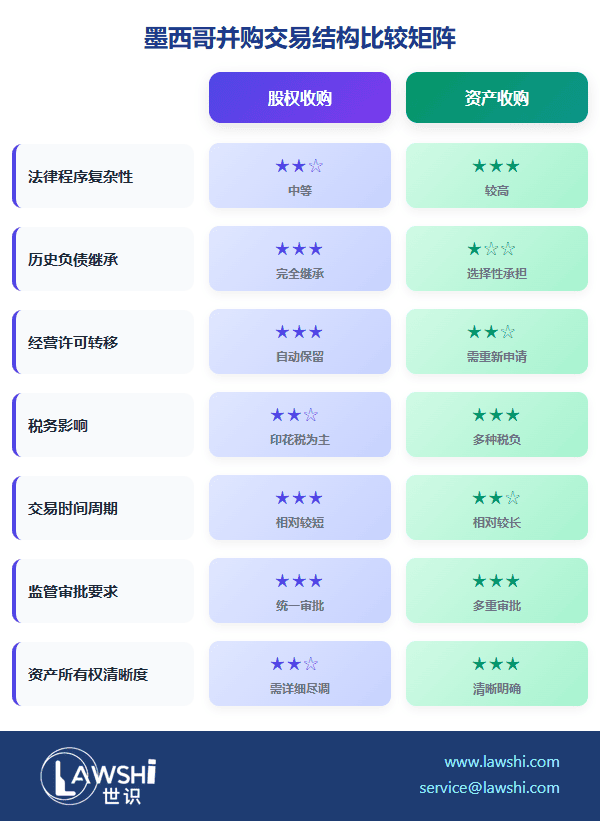 在墨西哥进行并购,主要面临股权收购和资产收购两种路径的选择。