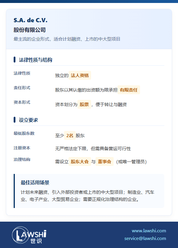 墨西哥《普通商业公司法》为其商业实体提供了明确的法律基础。其中,股份有限公司作为最主流的商业组织形式,其法律架构、股东责任与治理模式均有清晰界定。选择何种公司类型,不仅关乎初始资本的投入,更将深远影响未来的融资能力、税务规划以及股东权益结构。许多投资者初期仅关注设立速度与成本,却忽视了公司形态对长期运营灵活性的限制,这往往成为后续发展的掣肘。