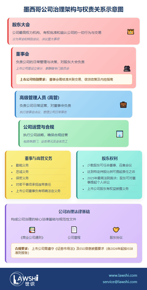 墨西哥作为拉美重要经济体,其公司治理体系兼具大陆法系传统与本地化特色。对于进入墨西哥市场的中资企业而言,建立符合当地法律要求的公司治理架构,不仅是合规经营的基础,更是有效管控运营风险、保障投资者权益的关键。Lawshi律师事务所凭借在墨西哥公司法律实务中的深厚经验,为您系统解析公司治理核心要点。