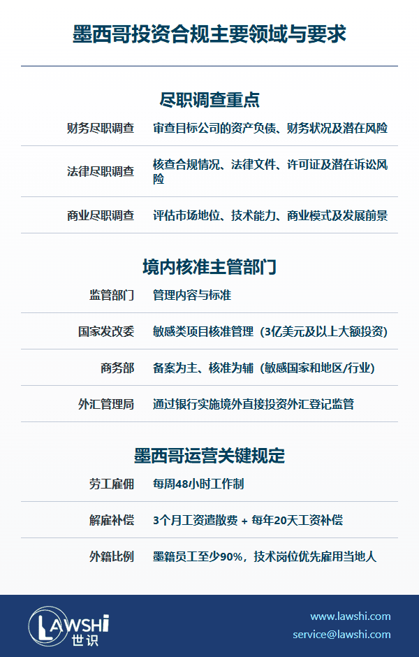中国企业赴墨西哥投资机遇与挑战并存,在享受市场潜力的同时,必须高度重视法律风险与合规运营。系统化的尽职调查、规范的境内审批及对当地劳工法规的严格遵守,是保障投资成功与稳定经营的基石。