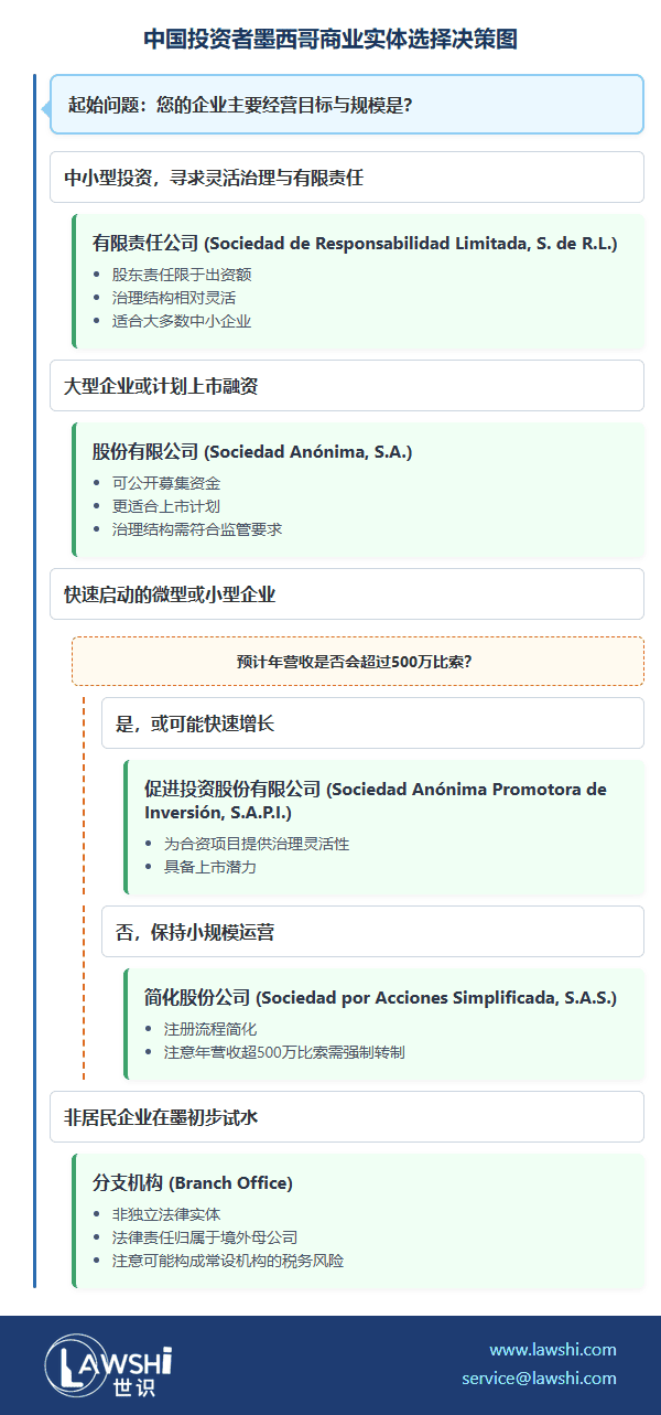 墨西哥最常见的商业实体形式包括有限责任公司、股份有限公司和促进投资股份有限公司。有限责任公司治理结构相对灵活,适合中小型投资;股份有限公司则更适合有上市计划的企业;促进投资股份有限公司为合资项目提供了特殊的公司治理安排灵活性。