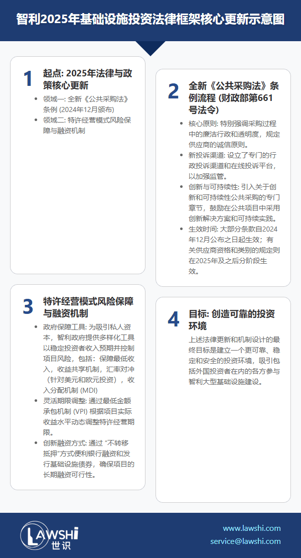 智利拥有拉丁美洲最稳定、最发达的基础设施体系之一,其成功的核心在于建立了以“特许经营(Concesión)”为主、政府直接投资为辅的成熟模式。凭借完善的法律框架、高度的经济自由度和对国内外资本的平等保护,智利为基础设施投资者提供了透明、可预期的商业环境。