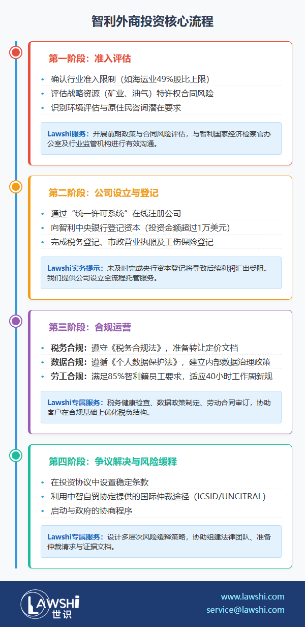 智利市场的法治环境与开放政策为外国投资者提供了广阔空间,但其在监管细节、合规执行与政策动态方面的复杂性亦不容忽视。 Lawshi凭借对智利投资法律体系的深入理解与丰富的跨境项目经验,始终致力于为企业提供从准入策略、日常运营到争议解决的全周期法律支持,成为中国投资者在智利值得信赖的法律与合规伙伴。