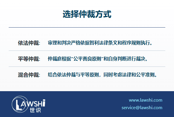 混合仲裁:仲裁庭在依据智利法律框架进行裁决的同时,亦可参考公平善良原则,兼具灵活性与合法性。